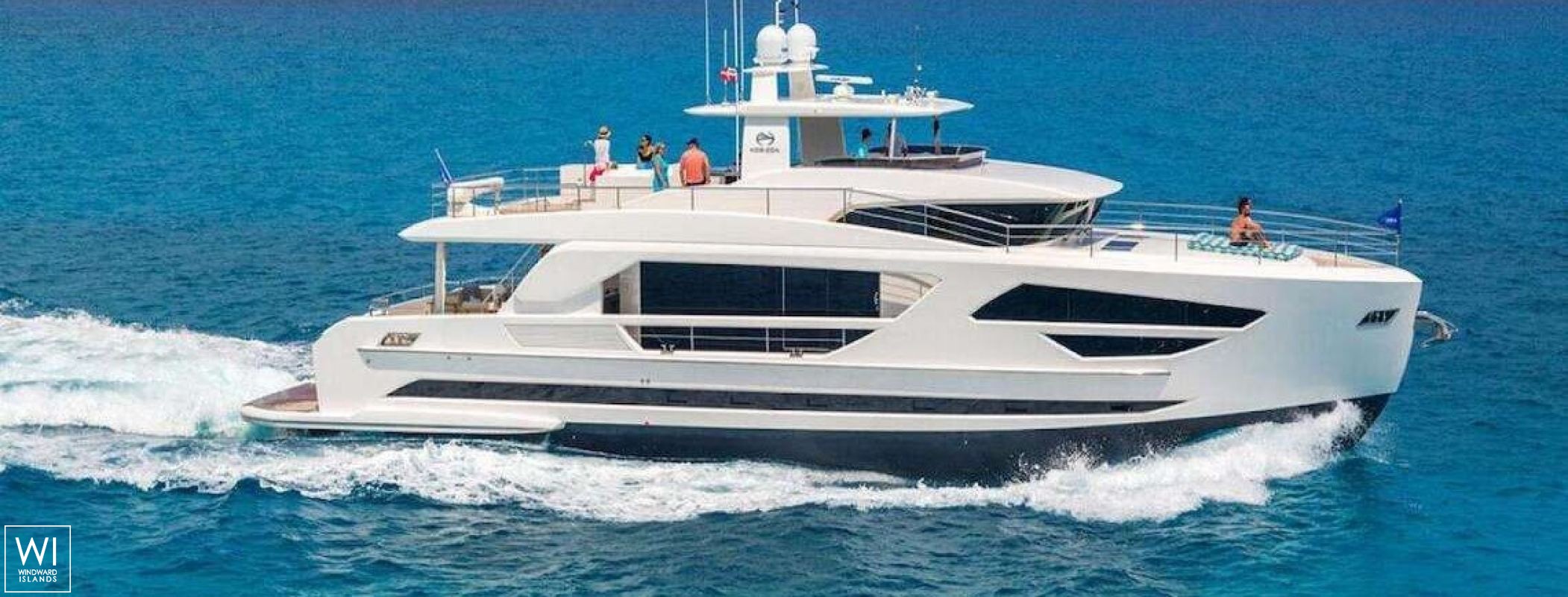 85 英尺长的机动游艇 MIDNIGHT MOON 是现代优雅和精致奢华的缩影。这艘时尚的巡航艇由 Horizon Yachts 于 2018 年推出,在保持高性价比运营的同时,还能提供更大的机动游艇所拥有的空间、私密性和舒适性。MIDNIGHT MOON 由两台 Cat C18A 1136 马力发动机提供动力,在水面上滑行毫不费力,巡航速度为 18 英里/小时,最高速度为 24 英里/小时,让您和您的客人全年都能探索巴哈马清澈的水域。 船上的设计强调空间、流线和奢华。主甲板的布局天衣无缝,首先是宽敞的船尾甲板,可容纳 8 人的长毛绒休息座椅和酒吧区让宾客尽情放松。走进舱内,您会发现一个开放式沙龙,全景窗户让整个空间沐浴在自然光中。在这里,L 型沙发、可容纳 8 人的正式用餐区和先进的美食厨房共同营造出一个温馨的社交环境。 主甲板上还设有全横梁式主人套房,堪称一绝。这间奢华的休息室拥有一张特大号步入式床、180 度全景视野、私人休息室、梳妆台、充足的储物空间和豪华的套间浴室。甲板下有三间宽大的大号贵宾客舱,每间都配有私人浴室,可容纳多达 8 位宾客,确保绝对的舒适性和私密性。 飞桥是理想的娱乐空间,配备了躺椅、可容纳五人的吧台、烧烤架、日用头枕、水上玩具储藏室和游艇补给船。无论是沐浴在阳光下,还是在日落时分品尝鸡尾酒,这个高架空间都能为社交和休闲提供令人惊叹的美景和无限可能。 MIDNIGHT MOON 将奢华与环保意识相结合。游艇配备了可在船上生产新鲜饮用水的净水系统、可重复使用的水瓶以减少浪费,以及可将黑水转化为海洋安全排放物的先进废水处理系统。这些贴心的环保措施让您在探索海洋时留下更少的足迹。 无论您是在宽阔的船尾甲板上休憩,在星空下品尝露天美食,还是在飞桥酒吧享用鸡尾酒,MIDNIGHT MOON 都将为您带来无与伦比的优雅和探险体验。这艘非凡的机动游艇拥有专业的船员,确保满足您的每一个需求,是您通往巴哈马宁静之美的大门。