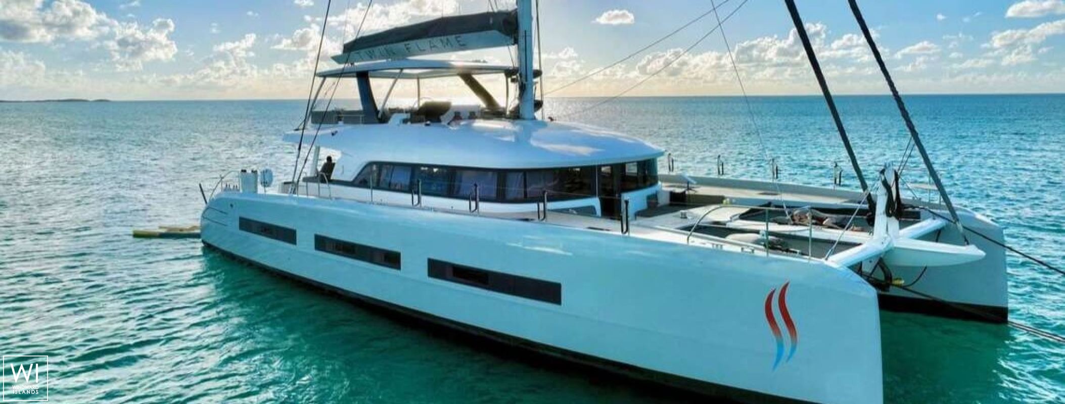 Twin Flame 77 是首屈一指的 Lagoon Seventy 7 双体船,树立了豪华帆船的标准,提供了难忘的水上旅行体验。这艘卓越的游艇曾荣获 2019 年英属维尔京群岛年度包租游艇展最佳游艇奖,将尖端设计与无与伦比的舒适性完美融合。 宽敞的沙龙内自然光线充足,营造出轻松开放的氛围,沙龙与船尾和船头驾驶舱无缝连接,让游艇内的每个角落都能轻松移动。宽阔的飞桥提供 360 度的全景视野,非常适合放松休息或一边欣赏美景一边品尝鸡尾酒。 Twin Flame 77 最多可容纳八位宾客,尽显奢华格调。主人套房内设有一张步入式床、一个舒适的休息区、一个步入式衣橱和一个独立浴室,为您提供了一个私密的休闲天堂。另外三间大号客舱(其中一间可转换为双人床)也同样优雅,均配有套间设施,确保每位客人都能享受到最大程度的私密性和舒适性。 在户外生活方面,客人可以在遮阳的船尾甲板上享受露天餐饮,或在休闲座椅上放松身心。游艇还设有一个延伸至游泳平台之间的沙滩甲板,为享受日光浴或轻松下水提供了一个诱人的空间。 Twin Flame 77 上提供的各种水上运动项目,包括滑水板、滑水板、桨板、浮潜装备和水下相机,一定会让水上运动爱好者兴奋不已。对于经过认证的潜水员来说,船上的潜水教练每周还可提供多达三次的潜水服务。 这艘 Lagoon 77 双体船集豪华、探险和舒适于一身,是在世界上最美丽的水域进行包租的理想选择。