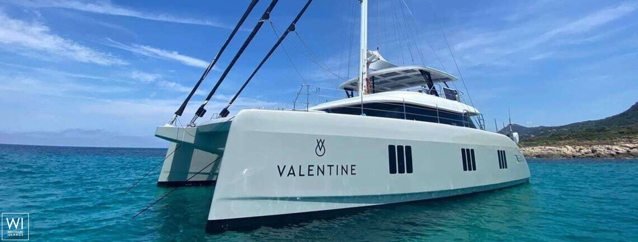Sunreef Yachts是世界顶级的豪华多体帆船的设计者和生产者,多年来一直在为双体船业务设立标准。 2021年推出的Valentine是Sunreef Yachts的最新作品之一,经过精心设计,为最挑剔的客户提供极致的舒适、风格和安全,具有高性能的航行、豪华的住宿、宽广的生活空间以及奢侈和创新的设计特点。 在四个船舱中,最多可以容纳八个客人。她的主客舱很宽阔,有一个走动的床铺、沙发和套房浴室。还有三个双人客舱可供选择。 主沙龙有一个大沙发,里面有一个内置的桌子和用于吃饭的软垫椅,所有这些都被窗户包围着,提供了极好的照明和景观。在船尾甲板和飞桥上都可以进行户外用餐和放松。 通过船尾甲板两侧的台阶可以接触到糖罐,方便下水。一艘18英尺长的带有90马力马达的招标船、滑板、甜甜圈、桨板、水上气垫、渔具、浮潜和潜水装备、Sea Bob和会合潜水都可以为您和您的客人提供。 这艘全包式的帆船装备精良,保证了船上的豪华、放松,最重要的是安全。 由于瓦伦丁在构思和设计上的卓越眼光,你将在高端水平的豪华双体船上起航,面对惊险的经历。 因此,欢迎登船,祝你有一个美好的旅程