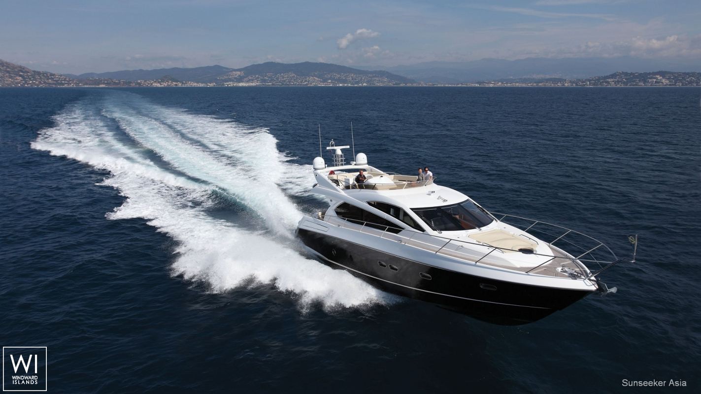 Sunseeker Manhattan 64以其全新的船体结构轰动一时,随着新款设计陆续出现,如今这种结构越来越受欢迎。 Sunseeker Manhattan 64的诀窍在于宽阔的船横梁向前一直延伸到吃水线上,获得了更高空间,也为地板和陈设腾出更多空间。 游艇上的空间巨大,宽敞的娱乐区,附带独立餐饮区的大客厅,以及配饰豪华的飞桥,足以容纳很多人。 这艘豪华游艇位于香港,可在香港提供半日及一日租赁。