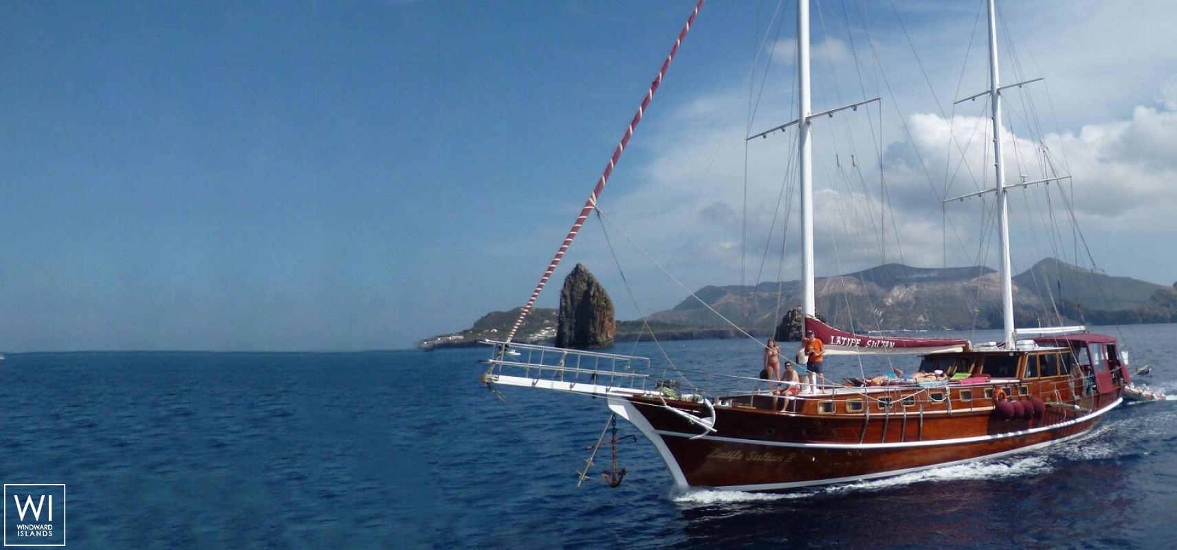 Gulet Latife Sultan是一艘位于意大利的24米马达帆船,于2005年在马尔马里斯建成,并于2017年进行了彻底的整修。5个大的双舱,有私人浴室和空调,内部完全由桃花心木建造。你可以真正的放松自己。游艇上有很多设施,有很多空间可以晒太阳。在这艘船上,你会有一次美丽的蓝色航行。 在带有室内酒吧的明亮餐厅里放松一下,或者坐在带有沙发的大型日光甲板上,享受伊奥利亚群岛的阳光。Gulet Latife Sultan给你一个愉快的假期,周围是诱人的、壮丽的岛屿景观,还有可用的、伟大的西西里食物,你会喜欢的。计划到伊奥利亚群岛的游船,体验一次千载难逢的经历。 三人的船员被安置在独立的舱室里。这艘可爱的船是为数不多的既能航行到埃加迪群岛,又能航行到伊奥利亚群岛的船,登船路线是到哥尔夫堡,在特拉帕尼登陆,在莱万佐、马雷蒂莫和法维尼亚纳停留。这是一个千载难逢的机会,可以探索西西里岛海岸未受破坏的美景。