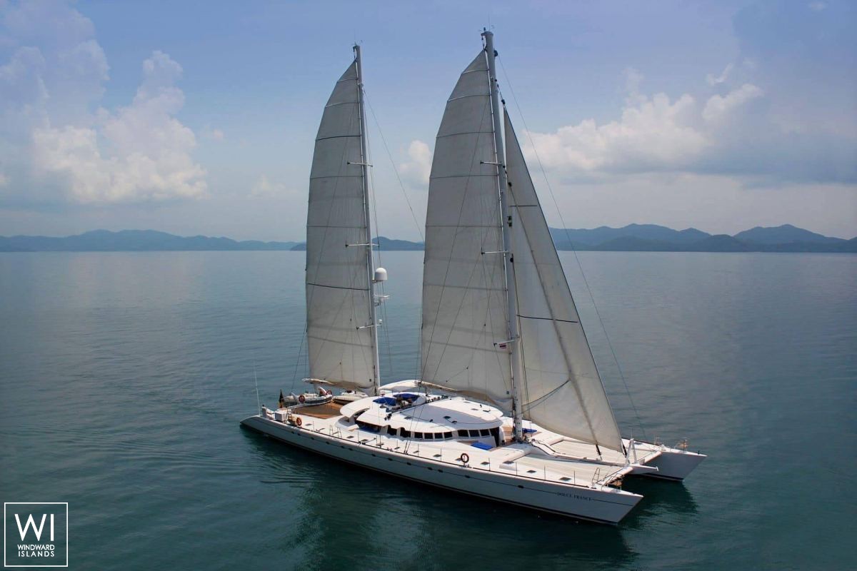 Die DOUCE FRANCE, der größte Luxus-Segelkatamaran der Welt, ist ein wahres Kunstwerk, mit dem die Passagiere exotische Orte wie Thailand und Indonesien ansteuern können. Die Stärke dieser 138-Fuß-Schönheit ist sehr beeindruckend; sie kann selbst bei einem Wind von 28 Knoten mit 22 Knoten segeln. Insgesamt zwölf Gäste können in den sechs klimatisierten Kabinen untergebracht werden, die mit viel Liebe zum Detail gestaltet und eingerichtet wurden. Jede Kabine hat ein eigenes Bad und ist komplett ausgestattet. Die DOUCE FRANCE ist für Traumurlaube an den schönsten Orten bestens gerüstet. Sein professionelles Personal wird Ihnen einen hochwertigen Service bieten. Die DOUCE FRANCE verfügt über einen Weinschrank mit 250 Flaschen und einer Auswahl der berühmtesten Weine der Welt, die zu den köstlichen Mahlzeiten gereicht werden. Die schöne Einrichtung strahlt Nüchternheit und Eleganz aus. Die Möbel aus Mahagoni und Palisander verströmen einen Hauch von kolonialer Eleganz. Wasserski, Jetski, Segeln und Windsurfen sowie ein persönlicher Tauchlehrer, der Ihnen den offiziellen Tauchschein ausstellen kann, sorgen dafür, dass die Gäste ihren bevorzugten Sport unter den vielen Einrichtungen an Bord finden.
