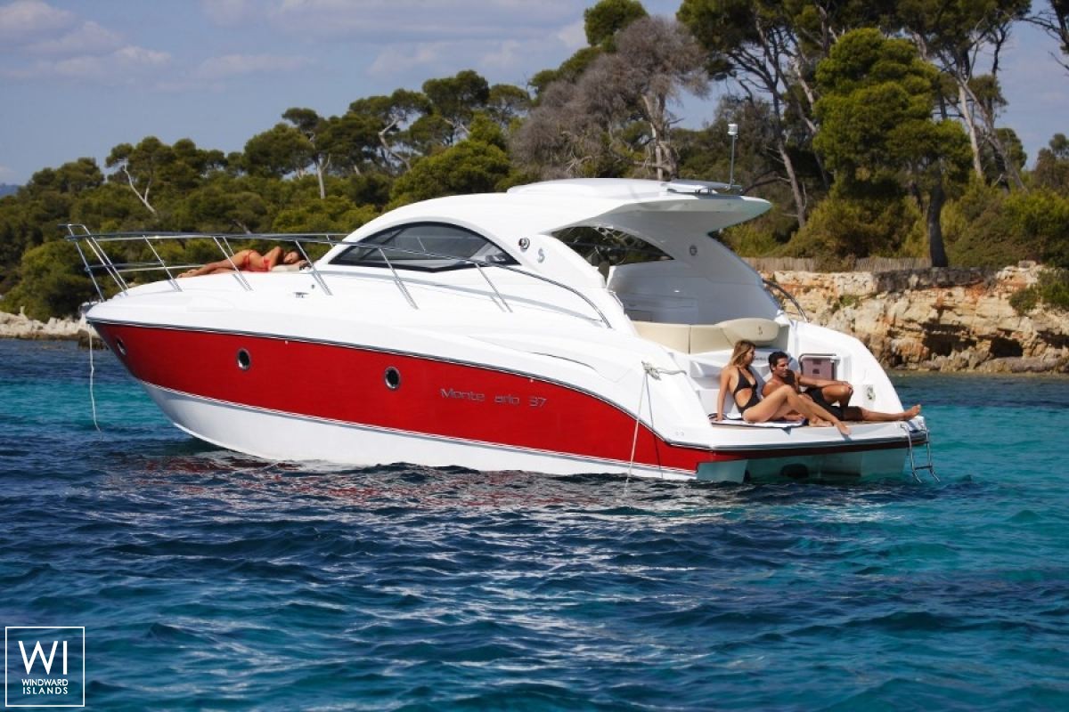 Diese Bareboat Motoryacht Monte Carlo 37 (1 mit zwei Betten und 1 Doppel Kabinen), gebaut in 2008 von Beneteau,kann bis 6 Passagiere beherbergen. Sie erreicht eine Geschwindigkeit von 25 Knoten.Damit Sie noch vermehrt von einer wahren Motoryacht profitieren können, ist die Monte Carlo 37 mit 2x300 PS Motoren ausgerüstet.