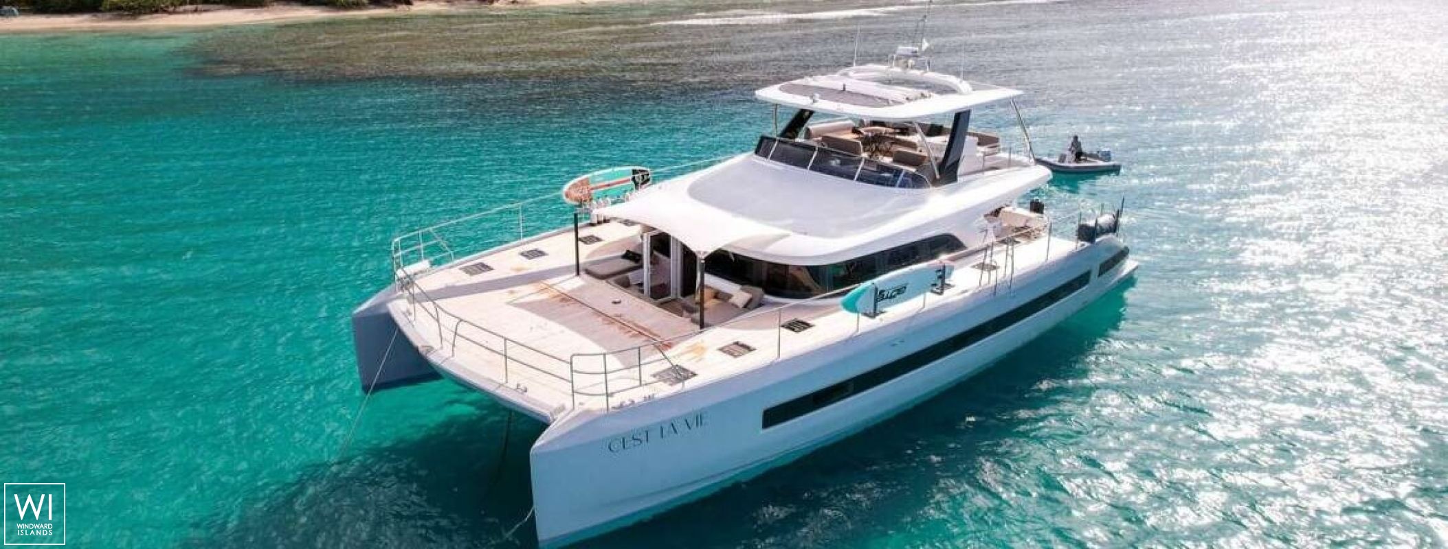 Die neueste Motoryacht von Lagoons ist wirklich atemberaubend. C'EST LA VIE, eine SIXTY7, ist eine der größten Motorkatamarane des Unternehmens und ist sowohl ein technisches Wunderwerk als auch ein atemberaubendes Kunstwerk. Die asymmetrischen Kurven und Linien des Katamarans vermitteln ein dominantes Gefühl von Macht auf dem Meer, während sein ultramoderner Lebensraum in Glas gehüllt ist. Für diese Yachtkategorie bieten die Außenbereiche einzigartige Möglichkeiten. Dank des vorderen Cockpits, das direkt mit dem Salon verbunden ist, können Sie die Yacht in völliger Privatsphäre genießen. Der zentrale Steuerstand befindet sich neben den Liegebereichen, die eine unglaubliche Sicht bieten. Die Cockpittreppe an Backbord führt zur Flybridge, die bei Regen durch ein elektrisch gesteuertes Schiebepaneel abgedeckt werden kann und so den Niedergang und das Cockpit schützt. An Bord der SIXTY 7 vereinen sich Raum und Licht, um Luxus und Komfort zu bieten. Das Innere und das Äußere sind nahtlos durch offene und ununterbrochene Räume verbunden und bieten Ihnen das Beste aus beiden Welten. Ein feines Gleichgewicht aus Luxus, Komfort und Stil sowie Einfachheit und Effizienz. Der SIXTY 7 verkörpert ein Höchstmaß an Liebe zum Detail, wenn es um die Verarbeitung geht. Die Aufmerksamkeit und Sorgfalt, die jedem einzelnen Detail gewidmet wird, trägt zum allgemeinen Gefühl des Komforts an Bord bei. Die Sixty 7 hat eine breite hydraulische Badeplattform, ähnlich wie die Seventy 8, die die beiden Hecks verbindet, um eine einzige Ebene über dem Wasser für Entspannung und Erholung mit Wasserspielzeug wie Paddelboards oder Seabobs zu bilden, sowie für das einfache Aussetzen von Beibooten.