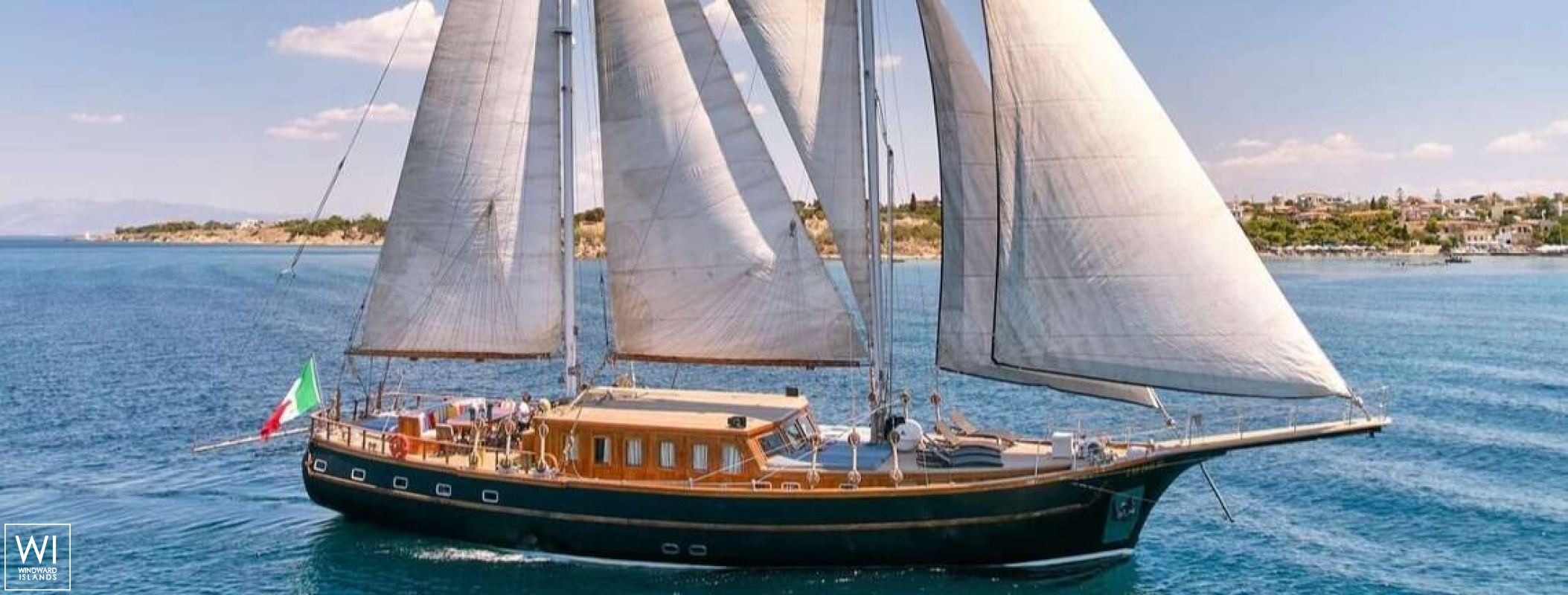 Die stimmungsvolle und sorgfältig gewartete Gulet MYRA ist eine 28 Meter lange Motorsegelyacht, die für Charterreisen zu den atemberaubenden griechischen Inseln zur Verfügung steht. Nach einem umfangreichen Refit im Jahr 2021/22 befindet sich die MYRA in einem tadellosen Zustand, und ihre professionelle fünfköpfige Crew sorgt für ein außergewöhnliches Chartererlebnis. MYRA ist das ideale Schiff für Gruppen von Freunden und Familien, die eine authentische Mischung aus Komfort und Eleganz suchen, die die zeitlose Anmut vergangener Zeiten mit den modernen Annehmlichkeiten verbindet, die die anspruchsvollen Chartergäste von heute benötigen. MYRA bietet bequem Platz für bis zu 12 Gäste in sechs luxuriösen Kabinen. Vier Doppelkabinen, jede mit eigenem Bad, und zwei Zweibettkabinen, ebenfalls mit eigenem Bad, sind alle klimatisiert, um maximalen Komfort zu gewährleisten. Das Mahagoni-Interieur der Yacht bietet einen großzügigen Lounge-Bereich zum Entspannen und für formelle Abendessen, geschmückt mit traditionellen maritimen Themen, einschließlich eines wunderschön gearbeiteten Bullauges aus Messing - ein Produkt von Massimos akribischer historischer Forschung. Der Salon bietet reichlich Platz zum Faulenzen und Genießen der Aussicht, ergänzt durch alle technischen Geräte, die für Unterhaltung und Konnektivität notwendig sind, einschließlich eines 50' Flachbildschirm-Sony-Fernsehers, Bose-Stereoanlage, CD/DVD-Player und Wi-Fi. Aber es ist an Deck, wo die MYRA sich wirklich auszeichnet. Das große Sonnendeck am Bug ist mit Kissen und reichlich Platz zum Sonnenbaden ausgestattet, während das einladende Achterdeck mit einem Tisch für 12 Personen ausgestattet ist, perfekt für Mahlzeiten im Freien, mit einem Schattentuch, das während der Hitze des Tages Schutz bietet. Für aktive Chartergäste bietet die MYRA eine Auswahl an Wasserspielzeug, darunter ein 4,1 m langes Beiboot mit einem 40-PS-Motor zum Schleppen und Wasserski fahren, sowie Kajaks und Schnorchelausrüstung, die für jede Menge Abenteuer auf dem Wasser sorgen. Tag und Nacht ist die MYRA ein verführerisches und erhabenes Schiff für alle, die ein außergewöhnliches Chartererlebnis suchen. Ihre engagierte Crew, die ein Leben lang in diesen Gewässern gesegelt ist, wird ihre Ortskenntnisse mit Ihnen teilen und Ihre Reise an Bord der MYRA wirklich unvergesslich machen.