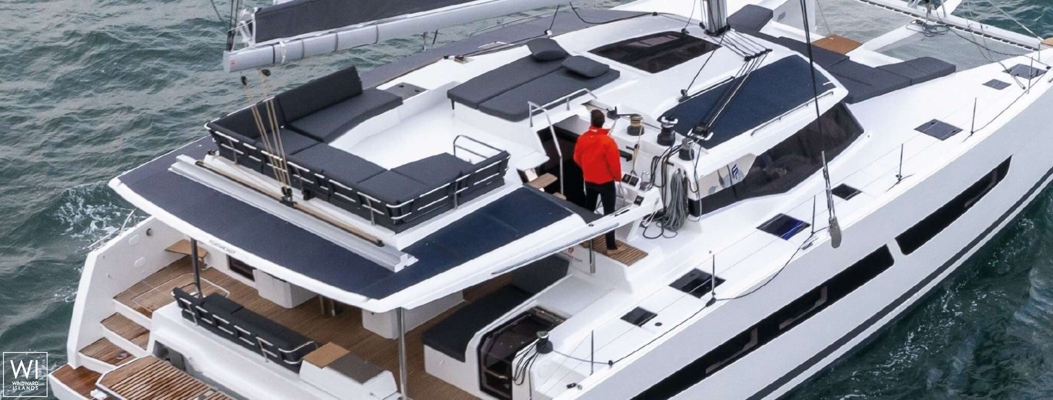 Le Grand Bogavant is a brand‑new Aura 51 catamaran, launched in 2023, and represents the latest generation of Fountaine Pajot’s luxury sailing fleet. Based in Martinique, she is available for all‑inclusive charters throughout the Caribbean, with the option to relocate to other islands upon request for an additional fee.