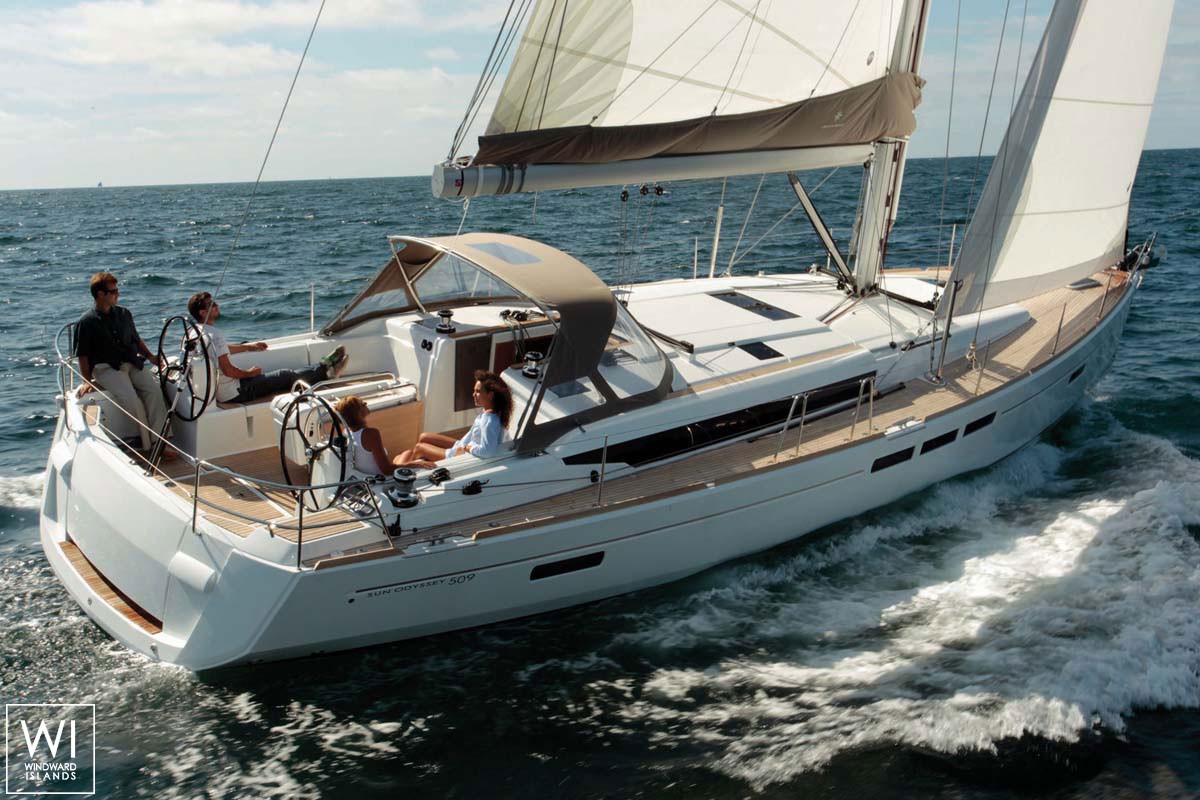 Chartering this Sun Odyssey 509 grants you the ability to explore the Cyclades or the Saronic Gulf. Located in Athens Lavrion, Greece, this Sun Odyssey 509 (5 double cabins), available for bareboat, built in 2015 by Jeanneau, is capable of hosting up to 10 passengers at a speed of 5 knots. Further more, and for a complete bareboat charter journey, Sun Odyssey 509 comes with bow thruster, electronic on board, equipped galley, solar panels, WiFi and alsoCD.