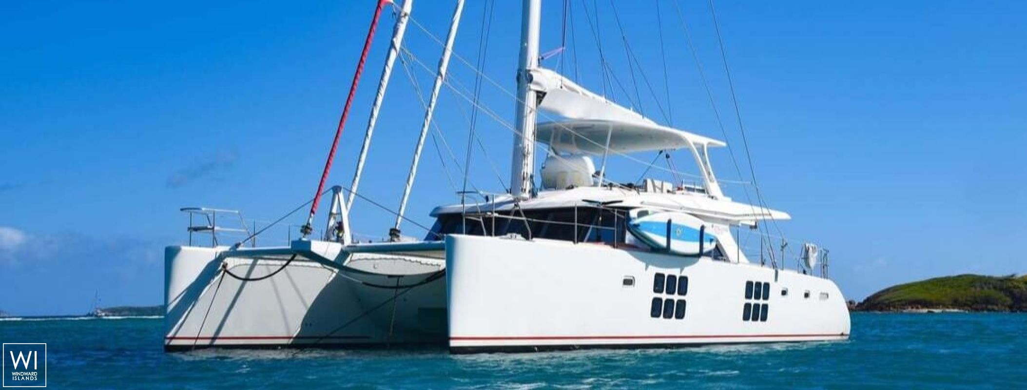 The Sunreef is an excellent demonstration of a luxury charter sailing catamaran. She features three queen cabins, each with its own private ensuite bath, complete with electric shower heads, vanity, and separate showers. She has several locations for all 6 guests to relax or sip a beverage while enjoying the cold trade breezes of the Caribbean!