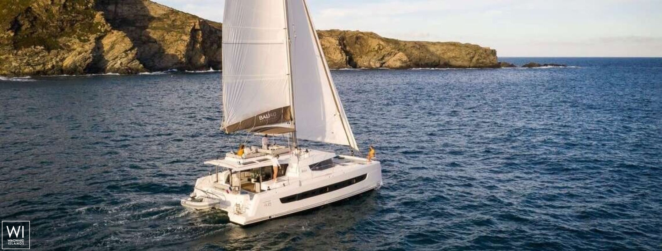 Le Bali 4.6 DISFRUTON est un catamaran haut de gamme, mesurant 14,3 mètres de long et 7,7 mètres de large, alliant élégance, confort et performances sur l'eau.