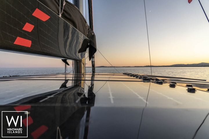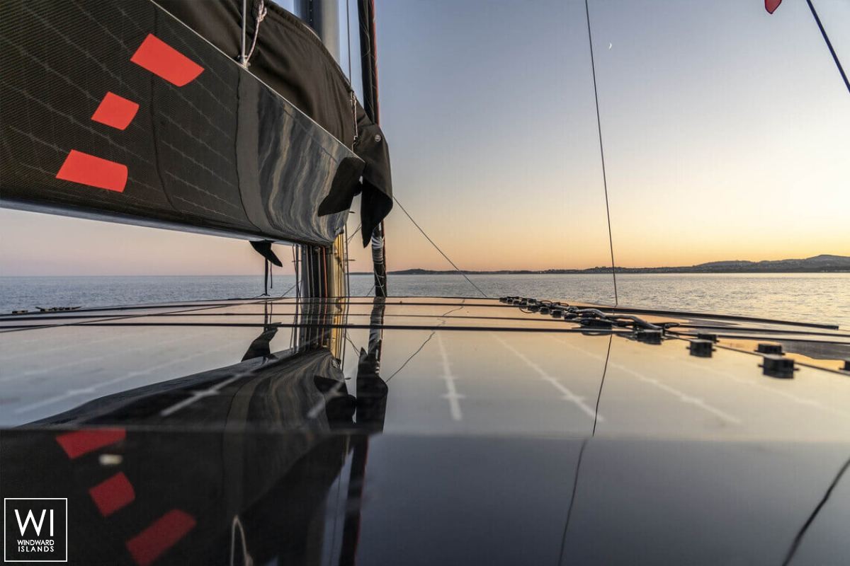 Il ponte di prua ha un doppio sunpad a babordo e a tribordo, così come un divano ad angolo e un tavolo per le bevande, e può essere accessibile direttamente dal salone interno.