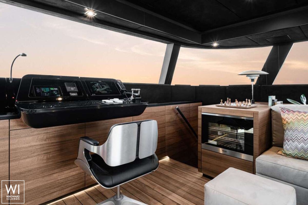 Per una finitura attraente, l'arredamento interno incorpora materiali di alta qualità come la fibra di carbonio, titanio, marmo e legno di teak da fonti regolamentate.